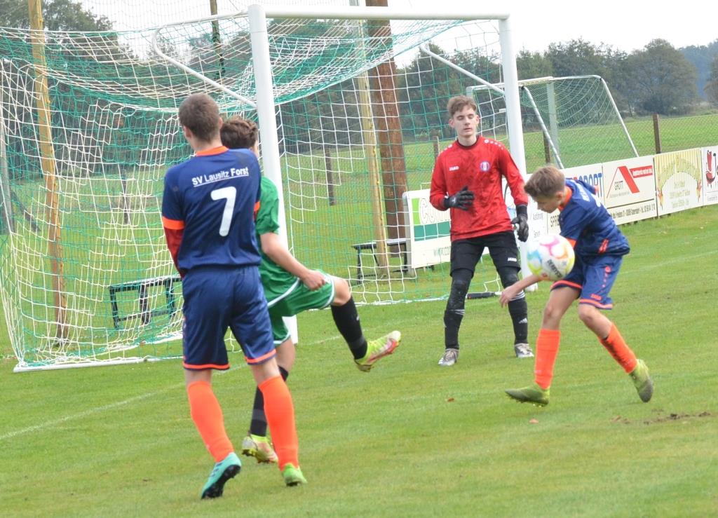 Mit Lausitz Forst erwarteten wir beim Heimspiel, an diesem Samstag einen, starken Gegner. Hier mussten wir beweisen, dass wir nicht ohne Grund auf Platz 2 stehen. Das Spiel lief von Anfang an genau nach Plan, die Mannschaft spielte eine organisierte Partie und kam ein ums andere Mal vors Tor. Nach 12 Minuten kommen wir gefährlich in den Strafraum, da konnte sich der Gegenspieler nur noch mit einem Foul helfen, Elfmeter. Elia nahm die Verantwortung auf sich und verwandelte eiskalt zum 1:0. Ab hier spielten wir einen ruhigen Ball und versuchten die Führung auszubauen, was wir aber in der ersten Halbzeit, durch starke Paraden des gegnerischen Keepers nicht schafften. In der zweiten Halbzeit gleiches Bild wie in der ersten, eine spielerisch starkes Kunersdorf. Durch das 2:0 von Max (51.) konnten wir noch beruhigter aufspielen, jetzt konnte uns keiner mehr den Sieg nehmen. Vollendet wurde das Ergebnis durch das 3:0 von Ole (75.).