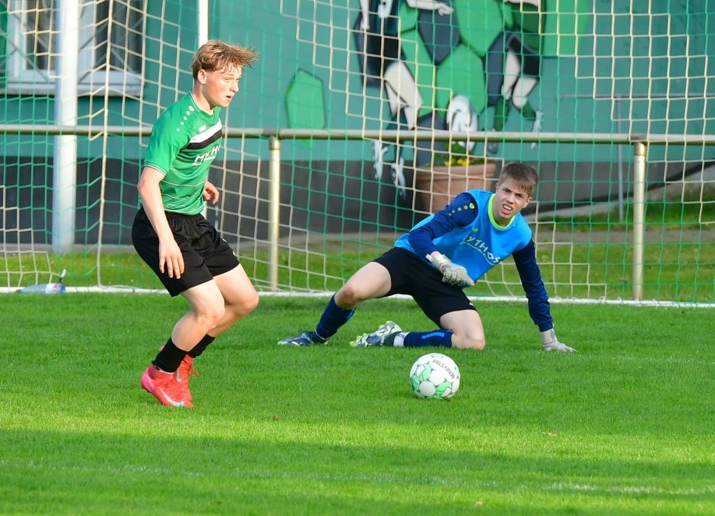 Heute auf der rechten Seite eingesetzt, überzeugte er immer wieder mit schnellen Läufen und guten Abschlüssen.Noch vor der Halbzeit erhöhte Ben Ole Hensel mit einem Doppelpack auf 4:0.
